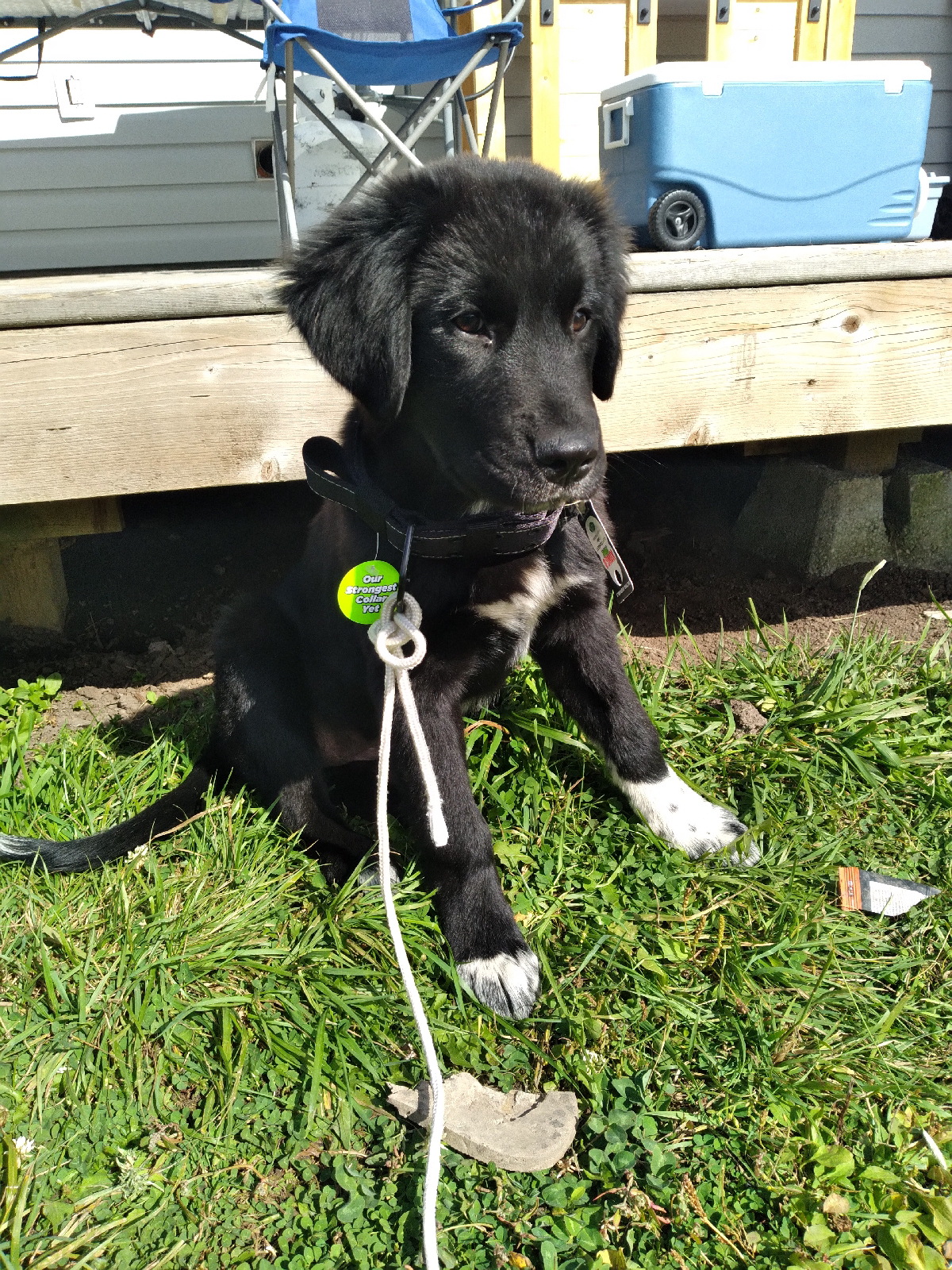 Nova is our new puppy! She is a 14 week old Australian Shepherd x Newfy. She is super calm for a puppy and does this cute butt scooch when she sitting down but not quite close enough to you.
